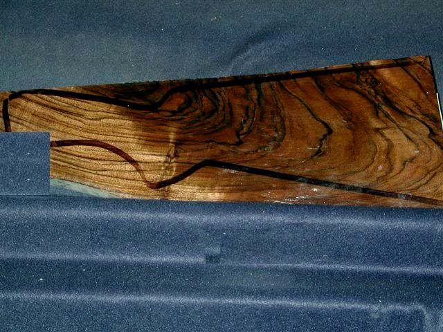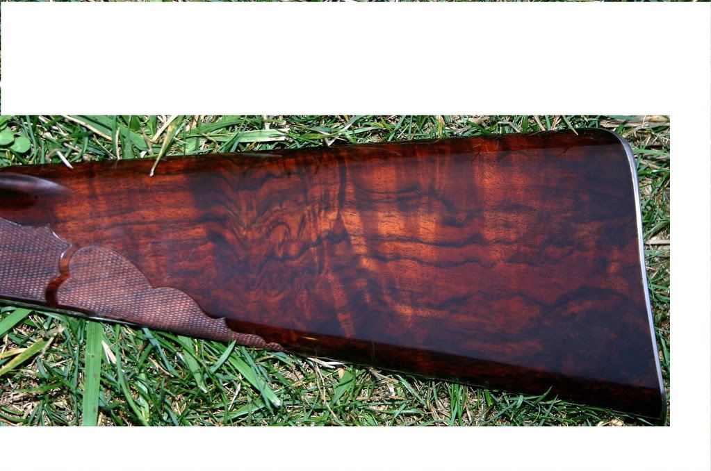 Just a curious comment of some of this beautiful wood and their wrist structure. Doug, doesn't that inclusion in the wrist look like a weak spot for the gun? Pete M. and David Furman, wouldn't the wrist strength be much better if the stock was turned over so that the grain would follow the contour of the stock instead of running out and allowing it to crack. Just an opinion, beautiful wood, maybe just rearranging the layout would still give it the beauty in the butt, with out the tremendous risk of cracking through the wrist. Again JMHO.