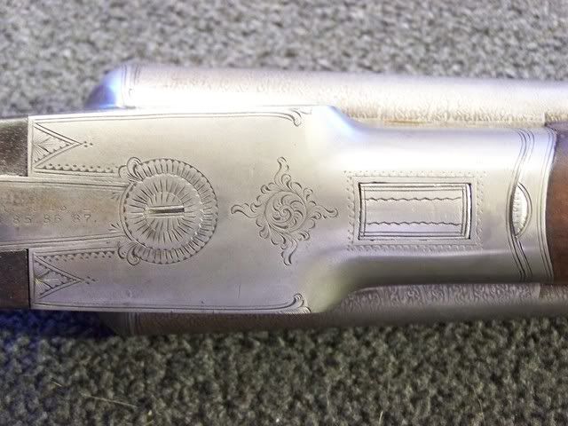 My FE, SN 38025 12ga 30", full pistol grip, also has chain damascus. It does not have the rib cut like LeFusil's or the 2nd sight. Engraving is a duck on right plate, quail on the left. Of interest is the bbl is marked 38025 E, but it also has an F marked seperately. All features of the gun show it to be an F grade. Bbls are also marked S B & Co.