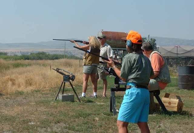 Daryl and I are very lucky to attend Sunday shoots at a good friend's ranch with shotguns and clays, rifles with steel from 25-300 yards, informal bench shooting for sighting in and paper, and the occasional handgun. Tim has all of this set-up next to the barn, under cover, with a chronograph, three clay target throwers (needed to test the three-barreled gun), spotting scope etc., just a few hundred yards from the Gallatin River.