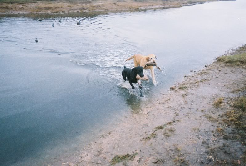 Argentina again, a cool double retrieve on yellowbilled pintail.