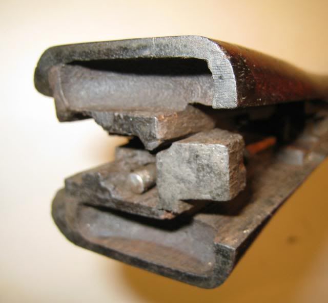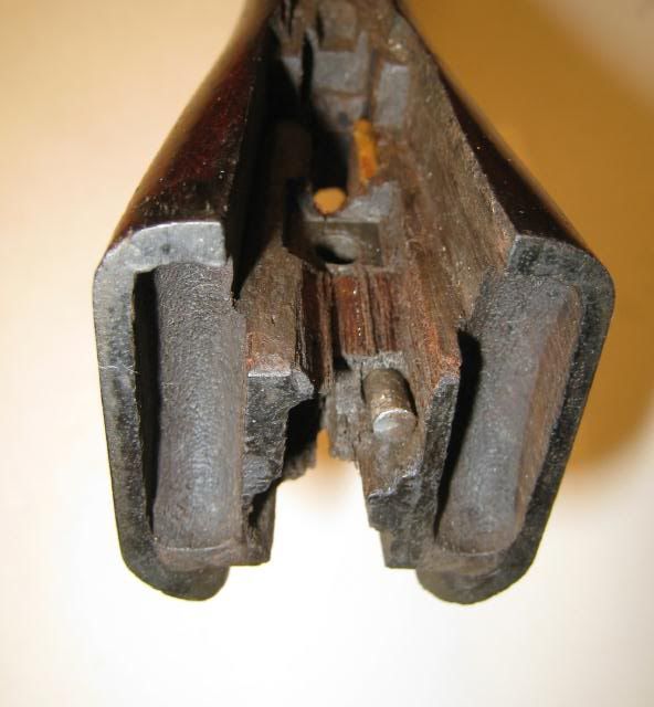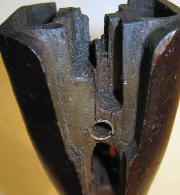 Go over to the PGCA site and see if one of the guys can bring to the top the thread on fixing up split stock heads. You do it with a wire staple drilled and epoxied across the split. Invisible when the stock is on the gun. From the pictures you post, it looks like the stock needs a good soaking in Wonko's brew to get the crud and oil out before attempting the repair. Maybe not, but I'm no gunsmith. Good luck.