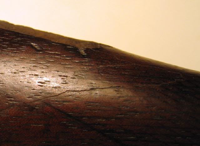 Looks pretty oil soaked to me, too. I've had old wood become unstable in the inlet areas after a soak in Wonko's brew, you have to get the oil out, but, run the risk of weird shrinking, swelling, and cracks forming after the nasty comes out. Probably the newer the wood, the better Wonko's evil brew works, without the bizarre side effects. If you don't care about looks, 3M 2216 structural adhesive to the rescue. Buy it at a local jobber (think machinery supply, not Home Depot), slather it on, clamp, and hope like hell you don't ever have to get it apart. Best, Ted
