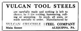 Edgar Allen & Co. Chicago, ILL. Bethlehem Steel Co., South Bethlehem, Pa. Carnegie Steel Co., Pittsburgh, Pa. Colonial Steel Co., Pittsburgh, Pa. Crucible Steel Co. of America, Pittsburgh, Pa Farist Steel Co., Bridgeport, Ct Wm. Jessop & Sons, Inc, 91 John St. New York C. Pardee Works, Perth Amboy, NJ Thomas Prosser & Son, 26 Platt St. NY Vanadium Alloys Steel Co., Latrobe, Pa West Leechburg Steel Co., Pittsburgh, Pa