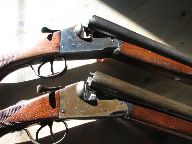 These are the two Ithacas I mentioned...Either would have done a good job..The ejector gun was a smasher for me...Dunno what the frames were made of