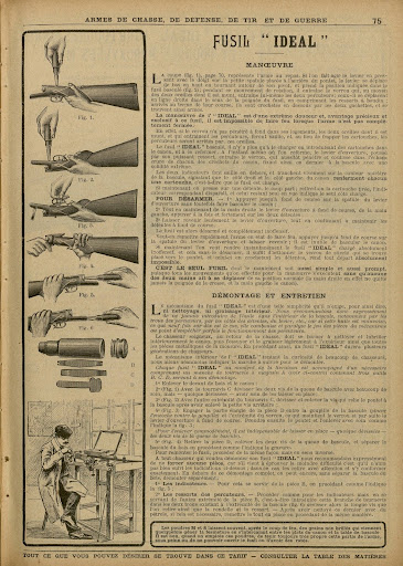 The careful hunter will, on returning from the hunt, clean and oil the barrels on the outside and internally, doing it sparingly also to all external metallic parts. If this is done the Idéal will last several generations of hunters.