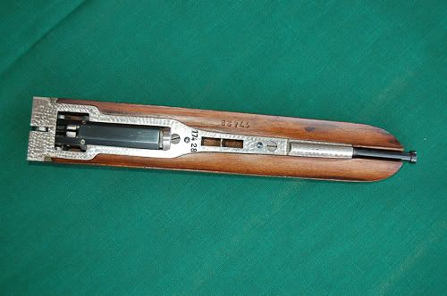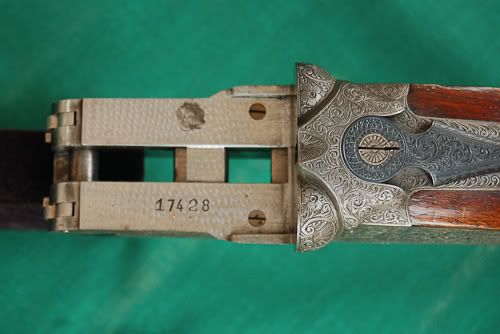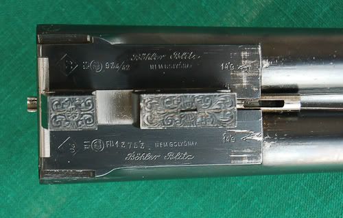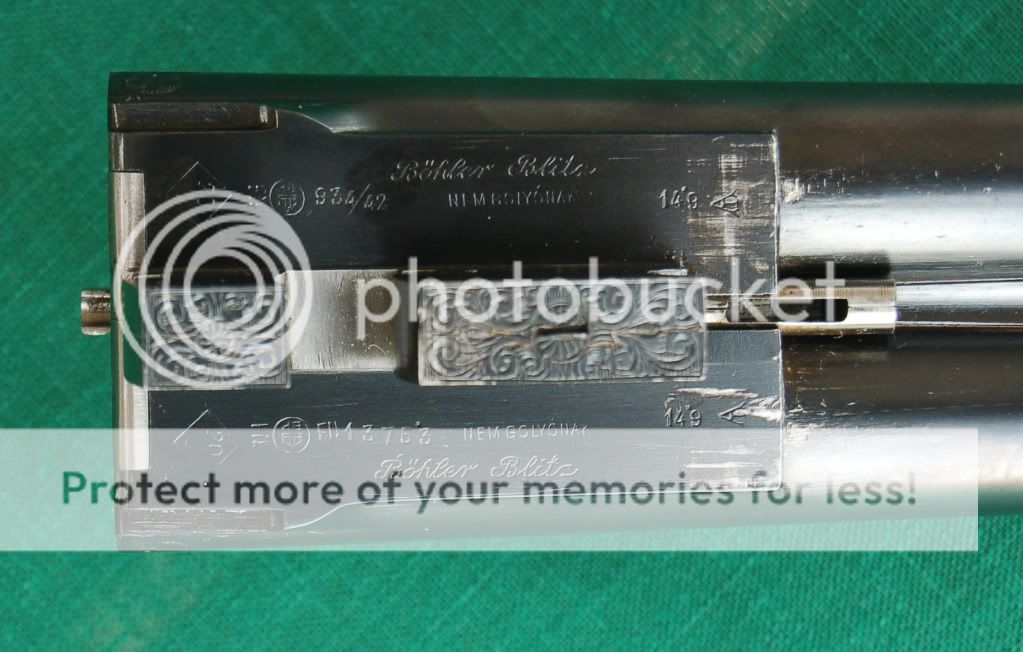 Ellenbr, the steel for the barrels is Bohler Blitz. That is found on the barrel flats. The ejector mechanism is the one described in the Frommer patent. Haven't had time to read the rest of the patent yet, particularly interested in the two brass screws in the action flats and whether the third bite is also described in the patent.