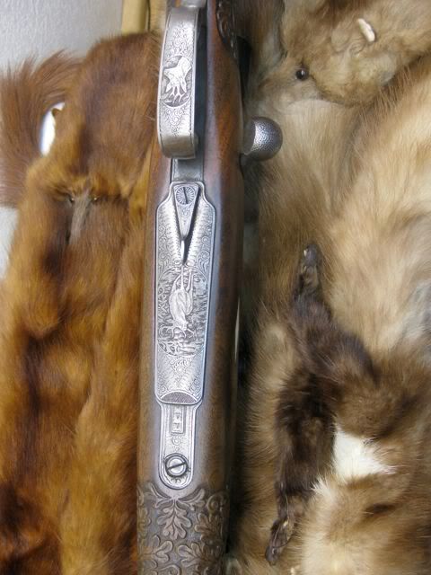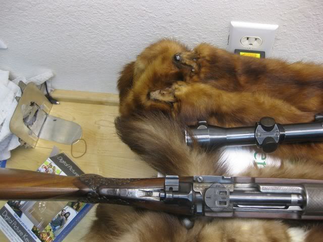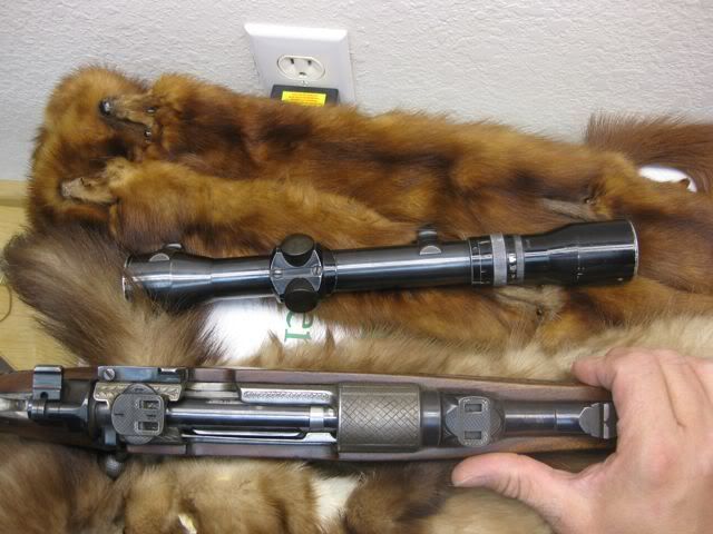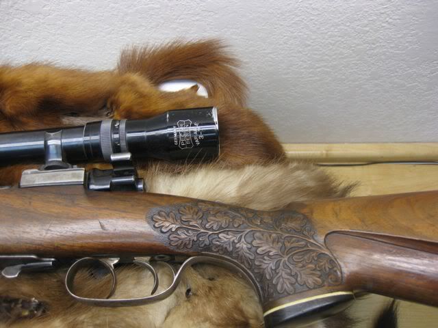 I bought this gun from an estate of a friend. Austria mauser. It has handling wear, but it is still very sound. Unfortunately the previous owner was small and shortened the stock! Gun is marked Waffen Dschulnigg Salzburg Austria. Claw mount scope. Ivory inlays. A lot of carving, and set trigers. Interesting floor plate release. Has two safeties. The standard and a thumb safety. The scope is mounted too low to use the normal safety. Chambered for 30/06, although I don't know if this was a re-chamber. Cheek pc and slings Ebony grip cap and forend. 3-7 Pecar scope marked Berlin Can you tell me something about it? It is in need of some clean up. Should I just "clean it up" or is it worth proper restoration? Approximate value? Thanks in advance. Hopefully this will give us something to talk about. I have had the gun for a bit. I enjoy this form and have been learning a lot from you guys.         Thanks Jerry