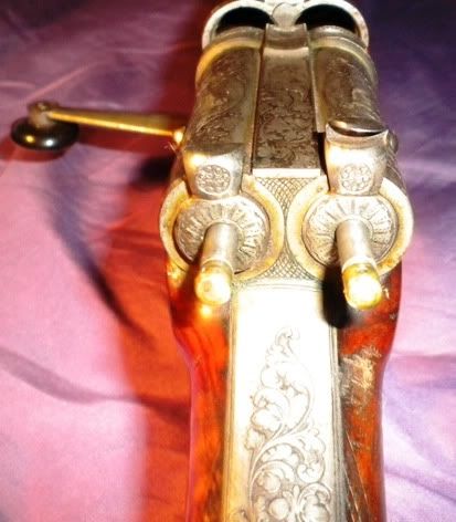 Berger Locks  Daly with "CFW" on tube. Friedrich Werner was listed as an owner of a Waffenschmiede in the 1920s. So from these 2 pieces of data, I'd say that the longarm with HofBüchsenmacher Berger of Köten in Saxony design locks is on a central fire by design by Teschner-Collath and was sourced from Suhl. The screws on the sides are typical of the Berger design and are a stop for the springs. Each can be cocked individual; whereas, Dreyse's design had a single bar that would cock both.     J. Göhler of Berlin owned by Mr. T. Marjamäki Kind Regards, Raimey rse