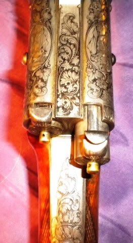 Giggle? Naaah, not really as I don't really know anymore about it than you do and you have it in your hands. With what you've described, it sounds as if you've confirmed what I think to have originated at the Georg Teschner/Wilhelm Collath facility. Have you attempted to insert a 20 bore cartridge? Does it drop in or experience some resistance at some dimension? If could snap a pic of the standing breech which shows the firing pin holes. It's the front of the receiver where the barrels snug up to the action.
