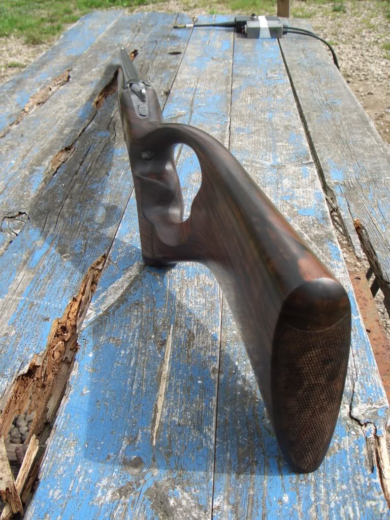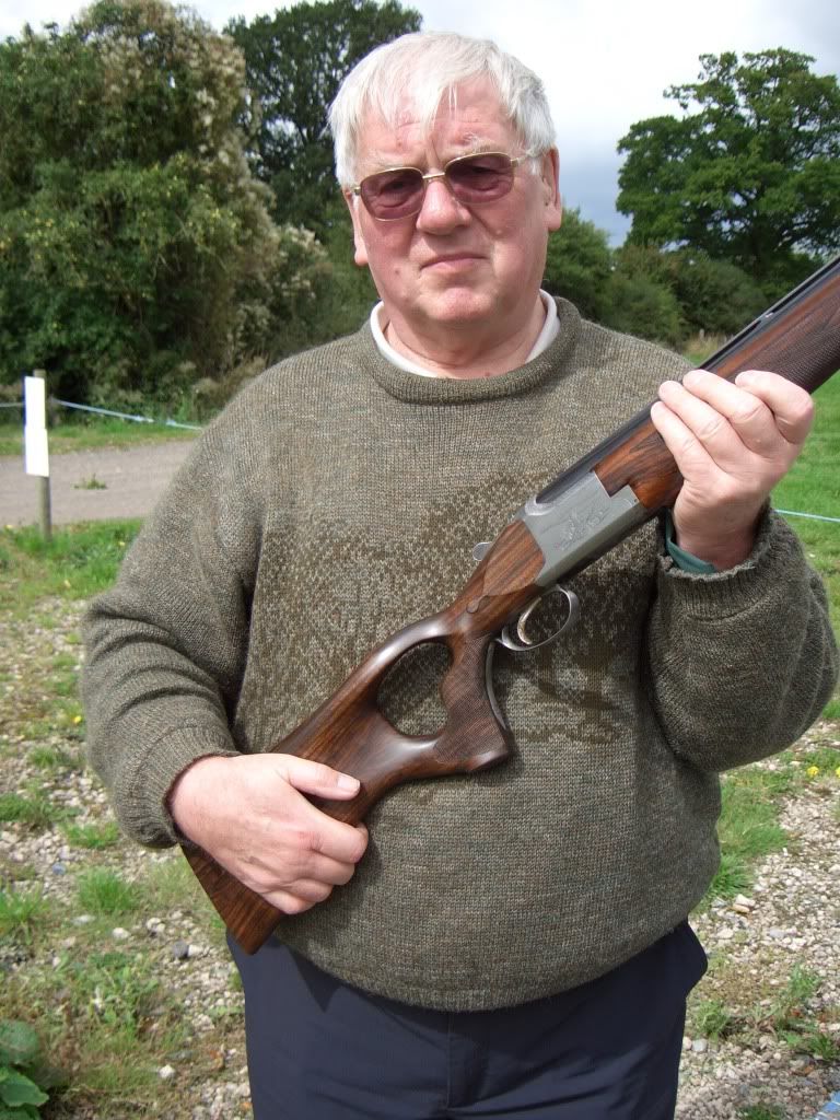 This guy brought this wonderful piece of work to try out at the shooting ground a couple of weeks ago. It was a cross over stock made from a great piece of wood, attatched to a very nice Browning. He could even shoot really well with it.