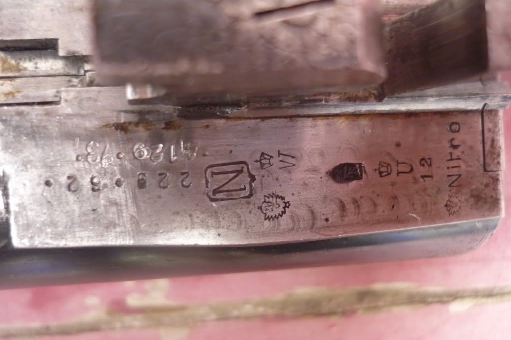 Thanks canvasback for all the effort and there looks to be a couple of numbers just ahead of the flats but for now I can't say what part they play. With the "Eagle Crown/S" high on the tubes, I wonder if the tubes were sourced from Germany and this accounts for the lack of the Weipert preliminary stamp of an intertwined script "E" "W"? Although that doesn't really make any sense. Poldi Anticorro/Antikorro/AK arrived on the scene circa 1910( http://www.doublegunshop.com/forums/ubbt...true#Post202701 ) so it was completed post 1910. Quite the puzzle as it seems there are some Weipert perliminary marks missing or the tubes experienced perliminary proof elsewhere before arriving in Weipert. It is also missing the Weipert Nitro stamp. Maybe it was ordered in the white from Suhl prior to 1923??? I've seen that mark on the lower rib before but can't place it at the moment. The frame still makes me want to hold with Wenzel Morgenstern for now. Kind Regards, Raimey rse
