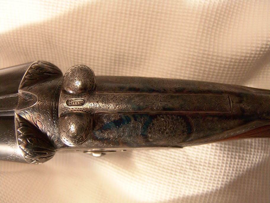 Jay Cee, There is a bit of a "horsefly in the yogurt" in referring to either of these guns as a P17. A true P gun has a hinged opening lever, with a clearly visible split about 3/8ths of an inch up from where it begins at the bottom of the sliding breech. Neither of these guns exhibit that detail. I suspect, but, can't prove from here, full on custom V grades, decorated at the 17 level. Thanks for the photos-I seldom stumble on to Darne guns in this level of condition. "Sans Solder", in this case, refers to a barrel built without brazing, which, was considered to be hot enough to affect the structural integrity of the steel-it is a snap to build a true monobloc gun using only silver solder.