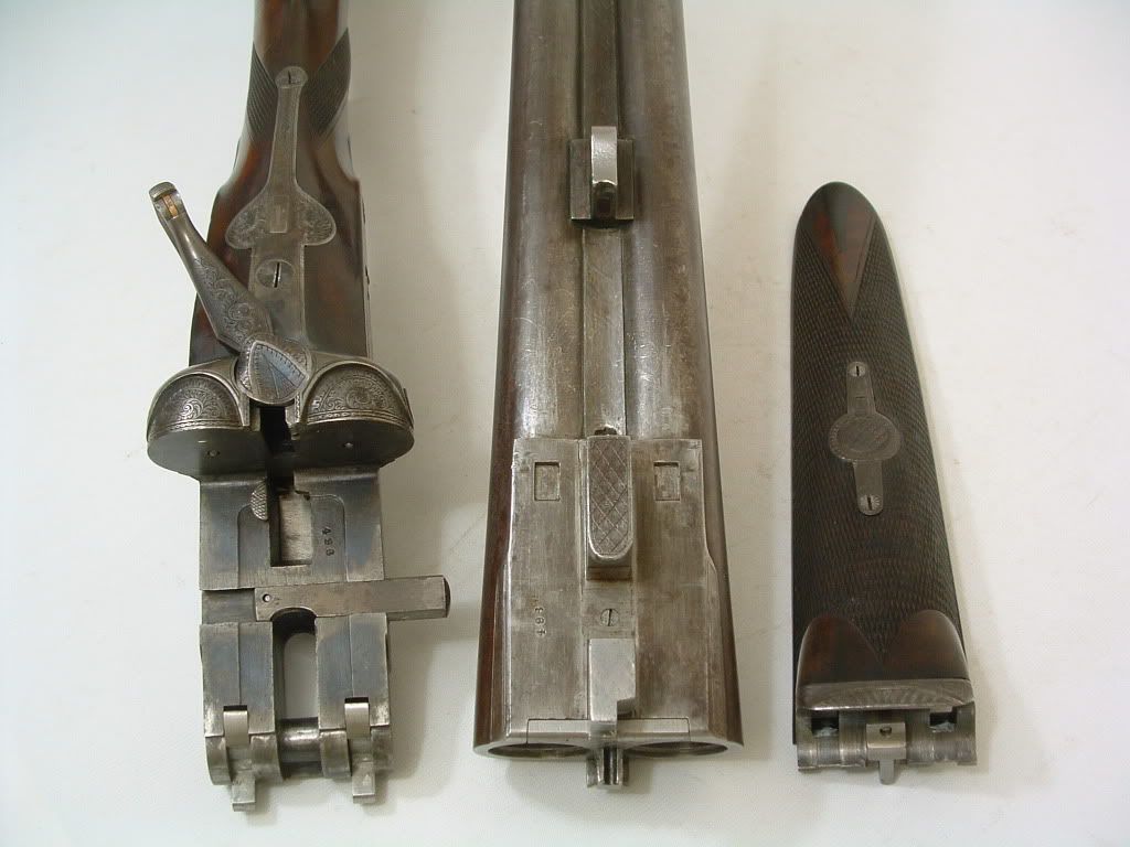 Sneider was a gunsmith, having several Patents here and in England. An examination of the locks on his hammerless guns will reveal multiple design styles, some with coil springs. All workmanship was first class. At the moment I cannot say what Clark's contribution to the firm was. He was gone in 1883.