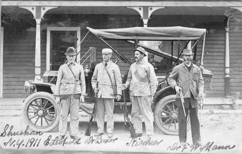 The chuck hunters, the rifle Dr. Baker is holding in the picture is the Borchardt above with the cocking-piece. A goal of mine many moons ago was to get a rifle that belonged to each of the four men in the picture.