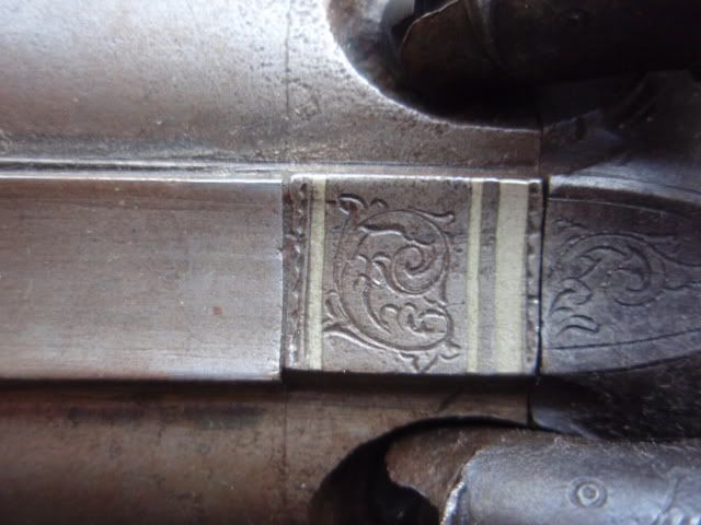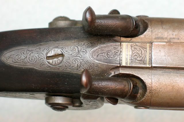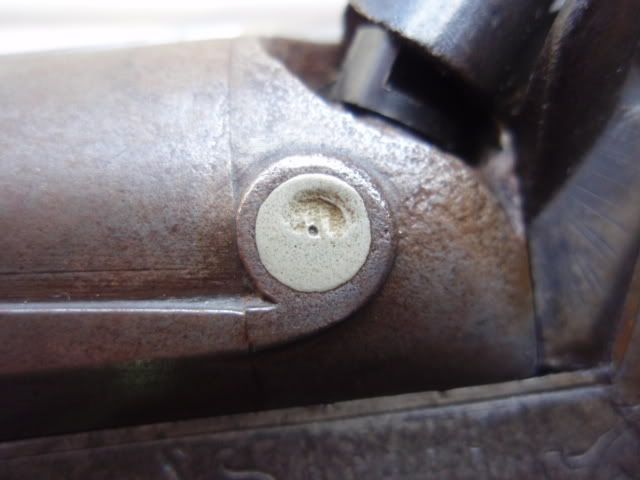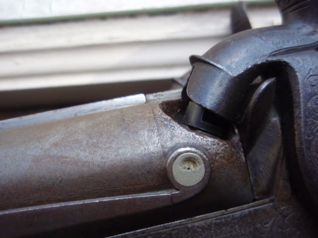 You may be right O Killer of Brant, but then again it looks the same as the screw on the left lock. I think a trip to "I  " may be in order on my up to Colt, he'll have an opinion I'm sure. The owner wants me to run it by him anyway.. SDH, the keel strip doesn't seem loose in the normal sense of the word when we speak of ribs but then again it looks like it could use some more solder under there to fill up the empty space. But, as I said, the barrels do ring beautifully. What does the "3" signify? Barrel weight? BTW, are the breech plugs threaded or soldered in?