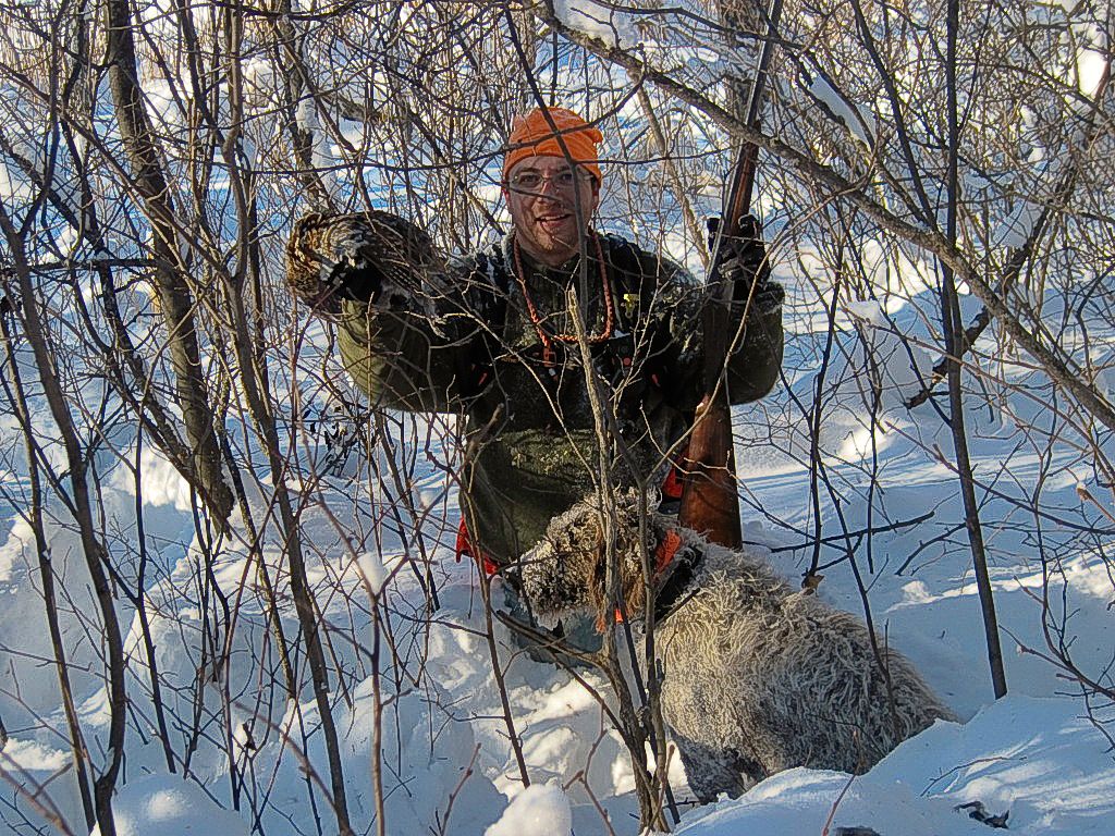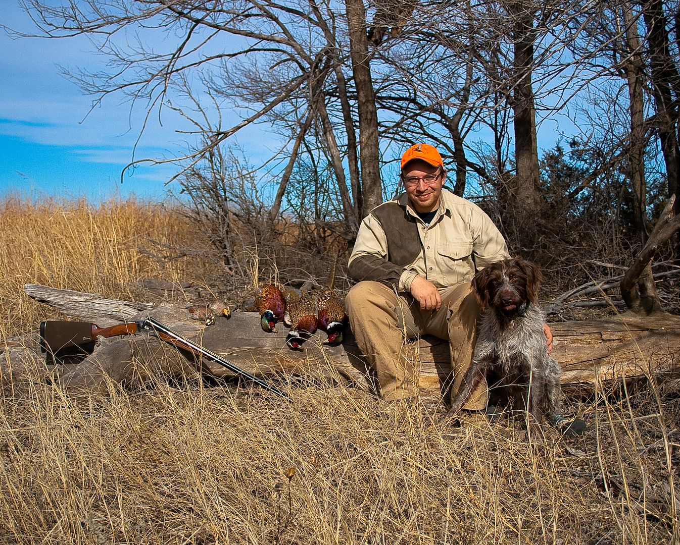 That is an A&D type Dickson action isn't it? Yes it is an A&D. Thanks again everyone. Glad you enjoyed the photos. Franchi, here are a few more photos of Daisy from past hunts. Daisy and me after a hunt on my place.  Daisy pointing a ruffed grouse.  The results  Daisy and me with our first prairie chicken.    Daisy with some wild Bobwhites and pheasants in KS  Daisy pointing sharptails.  This is what we shot over her that day.