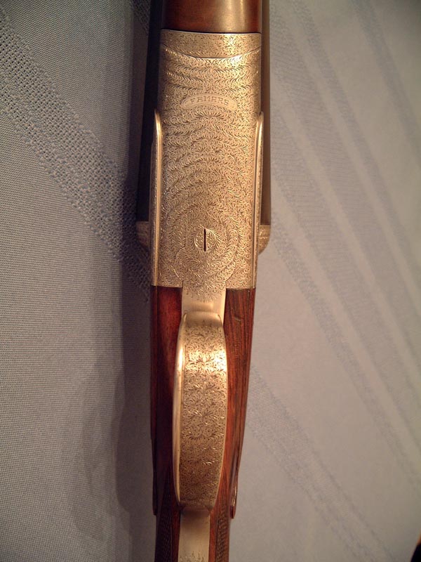 In my very humble opinion, A&S [FAMARS] make some of the finest guns in the world today. Some of their creations made during the late 1980's and 90's are beyond compare; with exquisite metal work combined with engraving of the highest order by artists only recently acknowledged. My Ca. 1988 "unique, one of a kind" custom hammergun, made specially for a well known live pigeon shooter and early Italian gun writer, is an incredible work of precision with beautifully struck chopper lump barrels and sculptural traditional action filing. The action is left "in the white" with little engraving except for some outlining and a few flourishes of fine relief scroll surrounding a small "A&S" on the bottom of the action; all done with taste and restraint. The trigger plate is proudly engraved "Pedretti Inc."