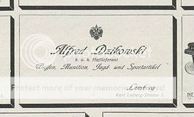 Below is some info, and some of the other info on büchsenmacher/fegyverkovács/gunmaker/puškar/rusznikarz Alfred Dzikowski is from Piotr J. Bochynski of Poland who has penned a few articles, with his interest lying with Polish sporting weapons & ammo. Anyway, Alfred Dzikowksi acquired/bought/took-over the firm "Magazyn Broni, perfumeryi i artykulów toaletowych" of Bonifacy Stiller circa 1879. Alfred Dzikowksi for a time retained the previous name "Weapons Warehouse/Storage, perfumery and toilet articles". by 1882 Magazyn Broni, perfumeryi i artykulów toaletowych was reduced to Magazyn Broni or Weapons Warehouse. By 1885 the concern experienced a name change to "Fabryka i sklad broni" which for now I guess to be Factory & Warehouse of Sporting Weapons. Then he added hunting haberdashery circa 1892 with the name reflecting the addition of hunting articles in "Fabryka i glówny magazyn broni i przyborów mysliwskich i lowieckich" or Factory and Sporting Weapons Warehouse along with articles/items for hunters and hunting.  Then in 1906 his son Dr. Zdzislaw Dzikowski takes the helm as Alfred Dzikowski expires at the age of 56. Another name change occurred around 1908 with "Krajowa fabryka broni mysliwskiej" which seems to translate to National Hunting Weapons Factory but I think it implies something akin to k.u.k. and that he was a supplier to a royal court and would be something like C.i K. nadworny dostawca. Then in 1911 the firm Alfred Dzikowksi was acquired by Galicyjska Spólka Mysliwska and the name reflected it in Krajowa Fabryka i Glówny Magazyn Broni firmy Galicyjska Spólka Mysliwska przedtem Alfred Dzikowski C.i K. nadworny dostawca, which was something of the likes of Royal Court Supplier and General Sporting Weapons Store previously Alfred Dzikowski royal court suplier( C.i K. nadworny dostawca). The firm existed to at least 1917/1918 or possible a bit later. For any that speak Polish forgive the letter l and s as they would not post correctly: as in Główny(Glowny) & Myśliwska(Mysliwsak). Kind Regards, Raimey rse