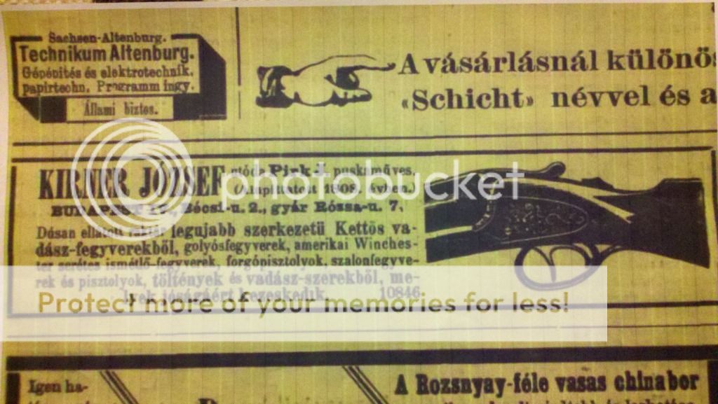 Also stumbled upon 2 other Budapest gunsmiths:  L. Földesy puskamüves - 1894 Advert  Ferencz Knebl vadászfegyvereket(Hunting Weapons) 1922 Advert & he is willing to take on repairs. Kind Regards, Raimey rse