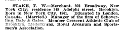 Definitely something needs to be penned on SD&G but there are still some holes in the chronology. For those following along, a March 19th notice gives that in April 1898 SD&D temporarily moved from 302 Broadway to 325 Broadway for the construction of a new facility at 302 Broadway. Then next year Charles Daly expires and the heirs and assigns regroup by incorporating and there was some controversy surrounding that.  Then bio info appears on T.W. Stake and his involvement.  T.W. Stake listing with 1900 bio info. Kind Regards, Raimey rse