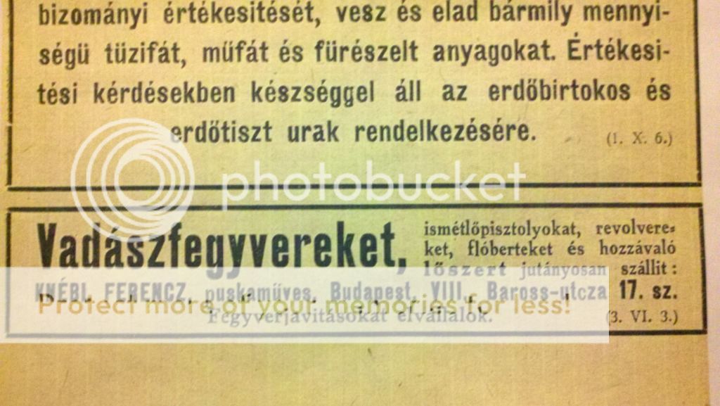 Ferencz Knebl vadszfegyvereket(Hunting Weapons) 1922 Advert & he is willing to take on repairs.
