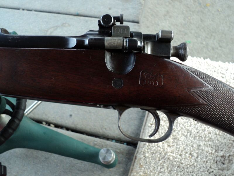 I drug several of my old military conversions using the military stock like the Krag with me today. Anyone who has some time with a peep sight knows how the sun can move the bullets around ;-)...fired number 9-10 just as the sun broke out of the clouds. After it left I fired two more to make sure.