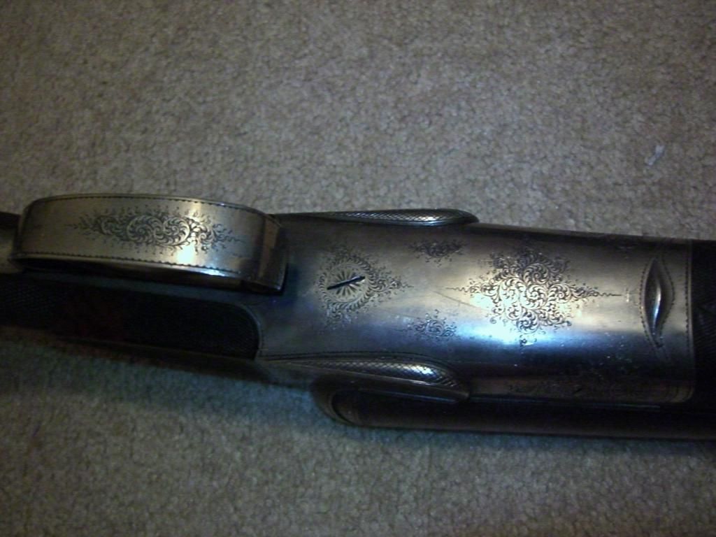 Many of the GGCA members are here. Is there a serial number on the triggerbow? Other than the overhanging scears, there doesn't seem to be too much deviation from the one below: http://www.doublegunshop.com/forums/ubbt...809d6c860bbaadbI've read that at one point J.P. Lower had quite a bit of capital so he may have made a deal with Auguste Francotte for a parts kit and had the Daly Suhl contingent to complete the sporting weapon. I have serious reservations that he finished any similar scatterguns. Kind Regards, Raimey rse
