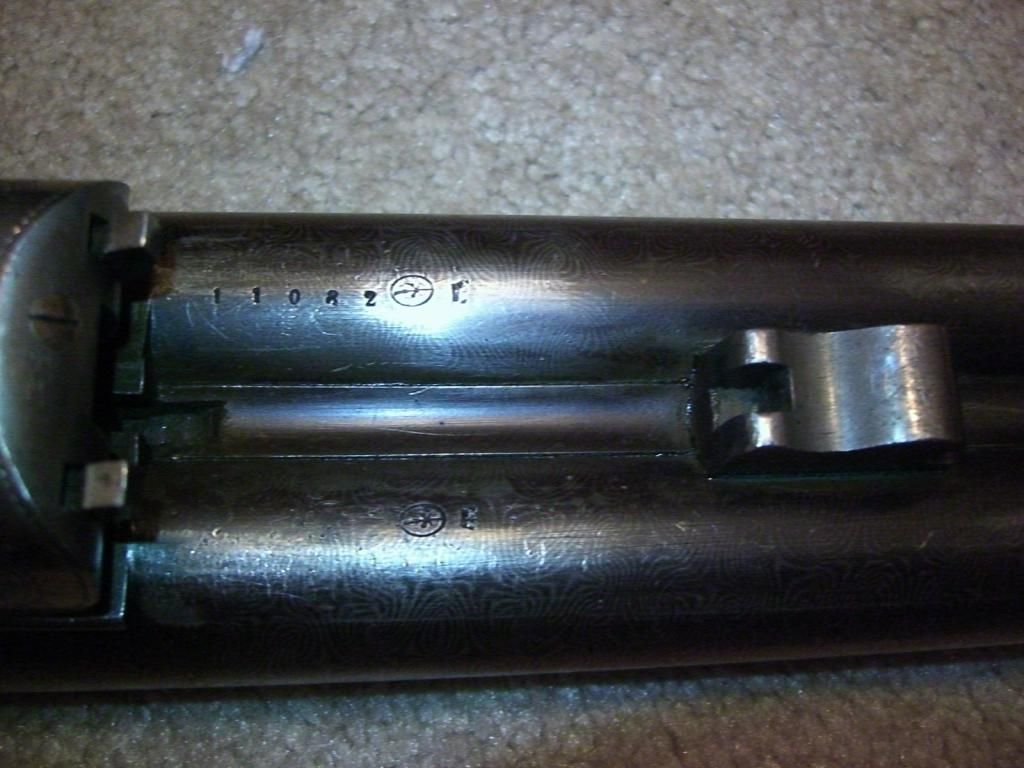 It would have been manufactured from 1884 forward: http://www.google.com/patents?id=58lCAAA...264&f=falsehttp://www.doublegunshop.com/forums/ubbt...true#Post272601The Permission Use Number if there will possibly provide insight. I think I have seen the tube maker's stamp or something similar as the Scholberg klan comes to mind. http://www.littlegun.be/arme%20belge/artisans%20identifies%20s/a%20scholberg%20gb.htmI'll need to set aside a bit of time to perform some comparision. Sure there were a few Suhl concerns that potentially could have had serialization at 11k but I would think it points to a Liege maker(or Birmingham??) as does the Crown over encircled speared crossed palms. But like Ken notes all the signature features of a Lindner sourced sporting weapon are there. Closely examine the tubes near the lower rib just forward of the flats for initials. Images of the flats & water table would be most insightful. Kind Regards, Raimey rse