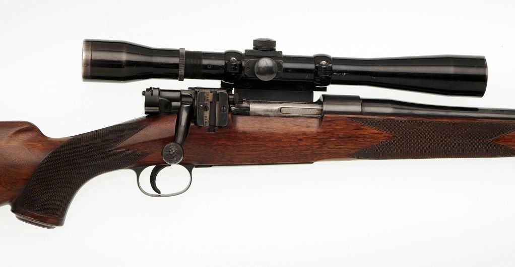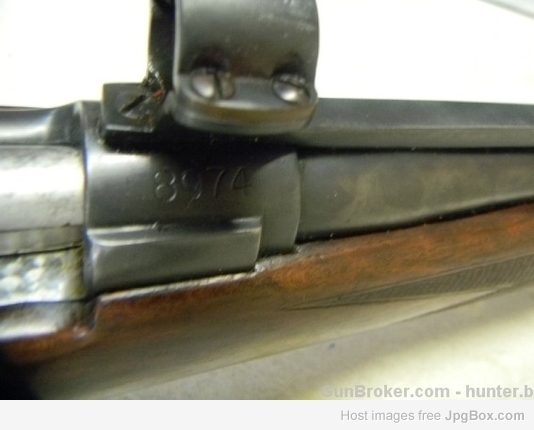 As usual, the original serial number on the action ring was obliterated and a new serial number engraved on the barrel. The altered bolt handle and G&H mount for a 1" tube low mounted scope appear to have been added at a later date.