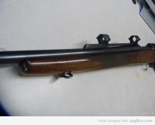 Excuse my faux pas. I have never messed about with the Springfield Armory .22's. It was told it was an M2 at auction. I have however lusted for a Springfield .22 Hornet Conversion, forever. It mechanically matches the one pictured in Brophy, exactly. The high ugly target/varmint comb has actually been spliced onto a stock of more classic design, at a later time. The raceway and follower damascening is of the earlier crossed lines G&H style. The bolt can't be removed from the action without removing the barreled action from the stock. The high comb has a cocking piece trough cut in it's front, so the bolt will not strike the stock when fully rearward. The good news is the rifle is in excellent condition. The rust bluing once cleaned up with Renaisance wax is 90+%, no scratches or rust, just slight wear. The bore once cleaned is bright and shiney as a new dime, no appreciable wear. What looked like burred screws, was in fact, just gunk...no burrs. The stock finish and checkering is 80+%. The TRIGGER IS EXQUISITE, it breaks at 2.25lb with the slighest amount of 1st stage take up and zero creep. The only thing needed is a 3/4 inch scope, a Model 48 long slide base with screws and a buttplate. [Rocky Mt. Bill is helping] It is interesting, the old recoil pad was a Hawkins with leather covering. I was told this rifle belonged to Leland Taylor U.S.M.C. a Camp Perry shooter in the 30's and 40's and who lived in my area, BEFORE HIS DEATH. Whether it is a Griffin or not, I couldn't pass it up for WHAT I PAID [just over $900].