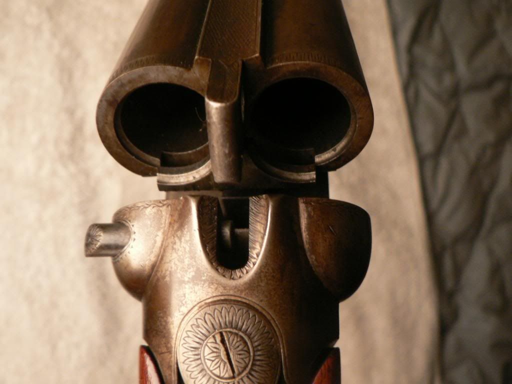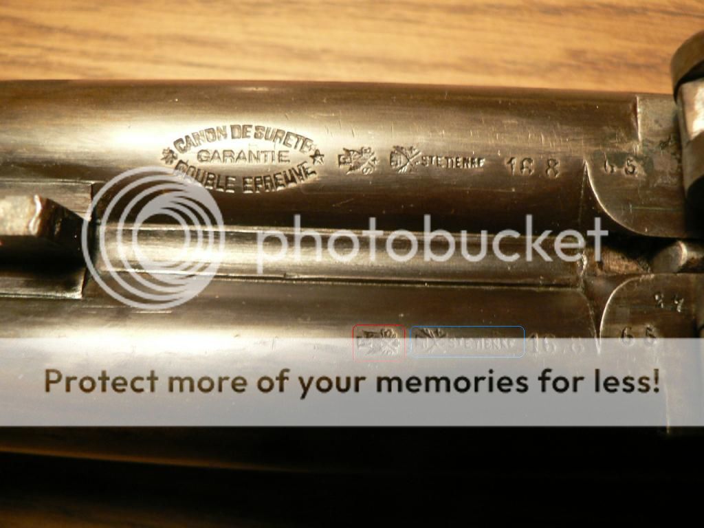 Raimey rse Re the proofmarks, I initially read them as two of the same on each barrel, but closer inspection shows them to be different. The only reference I can find to the left hand mark with the capital E--not sure I've ever seen it before--is to a black powder proofmark that was only used from 1869-79. That would mean the gun has had only the standard proof. But one source I have states that the right hand mark replaced the left hand mark in 1879. Interesting. Otherwise, the gun looks to be an example of a very plain French boxlock.
