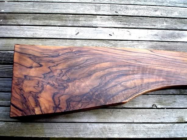 I think that this board has cost me several thousand dollars in extra wood cost. Not six or seven years ago I was perfectly happy with my collection of Black walnut blanks. A little crotch here, a little crotch there and I was content. I had Claro fiddle for automatics and black for doubles and rifles.