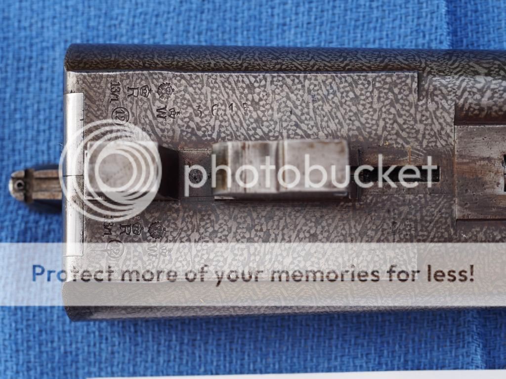 The last Prussian Daly I have recorded was made in 1933. So the demise of the Prussian Daly and this gun's production date is an interesting coincidence But the serial number and mechanicals of this gun are very different than that gun. This gun is like no other Prussian Daly I have seen. Again, at a minimum, I would have expected to see the Daly name engraved on the sides of the action. Heck, they didn't even spell out "Charles Daly" or "Regent Diamond Quality" on the rib - just "Regent Daly". To top it off the, the "Regent Daly" inscription doesn't fit into the space allocated. There have been other Daly regent diamond fakes noted which is why I am skeptical of this gun.