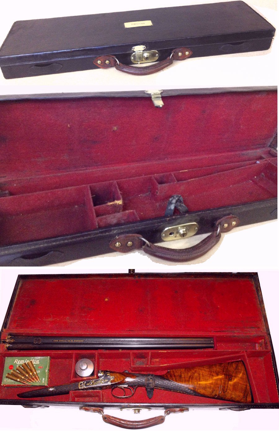 In order to protect my new acquisition, I purchased a vintage leather hard case from England on Monday. Top 2 pictures show it as I received it today. The bottom picture shows it after some clean-up and with a few completed internal modifications to fit the Lefaucheux with its attached forend. Now all I need is some good weather to get out and try it.