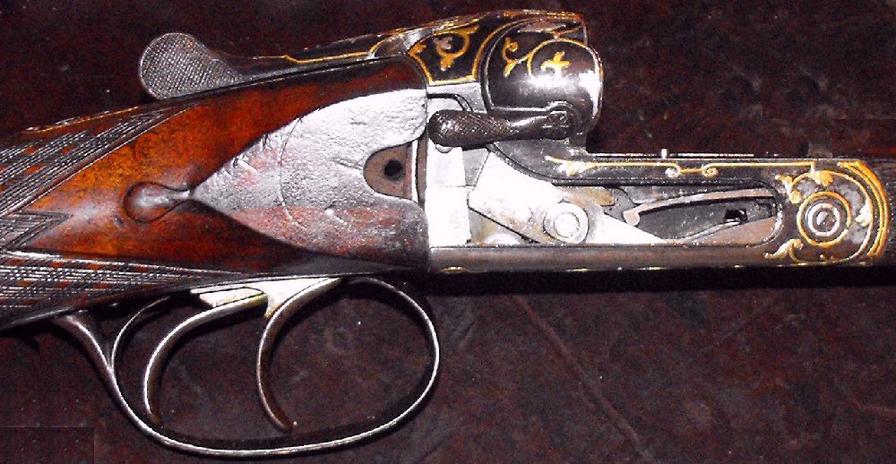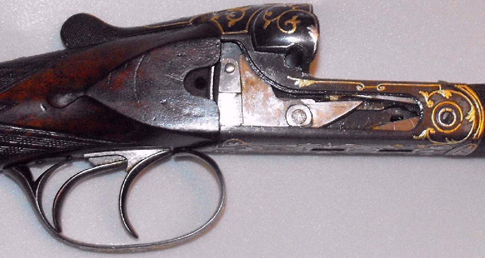 The safety lever was held in place with a small screw in the lower center front of the breach. You can see the empty hole there. Removing the safety rod was necessary to allow removal of the right-side lock plate.