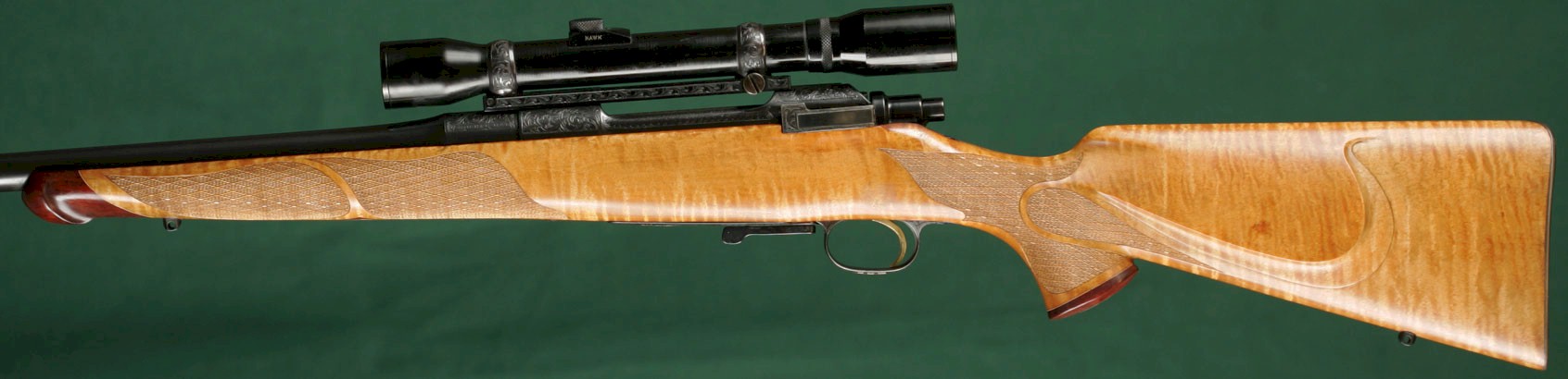 Leonard Mews marked all his stocks with his "Name Stamp" which read "LGMews". If he stamped his name in the Barrel channel or Action area, he made the complete stock from scratch. (a block of wood) If stamped the stock under the butt plate, he only checkered an existing stock given to him by a customer. These could be Factory or custom by another maker.