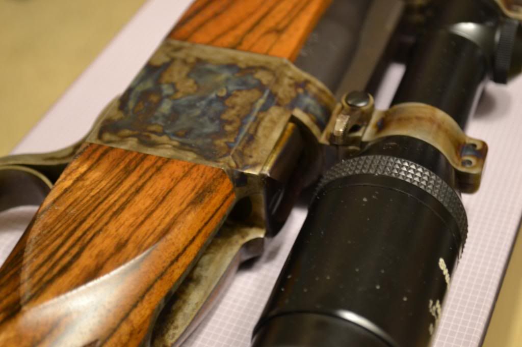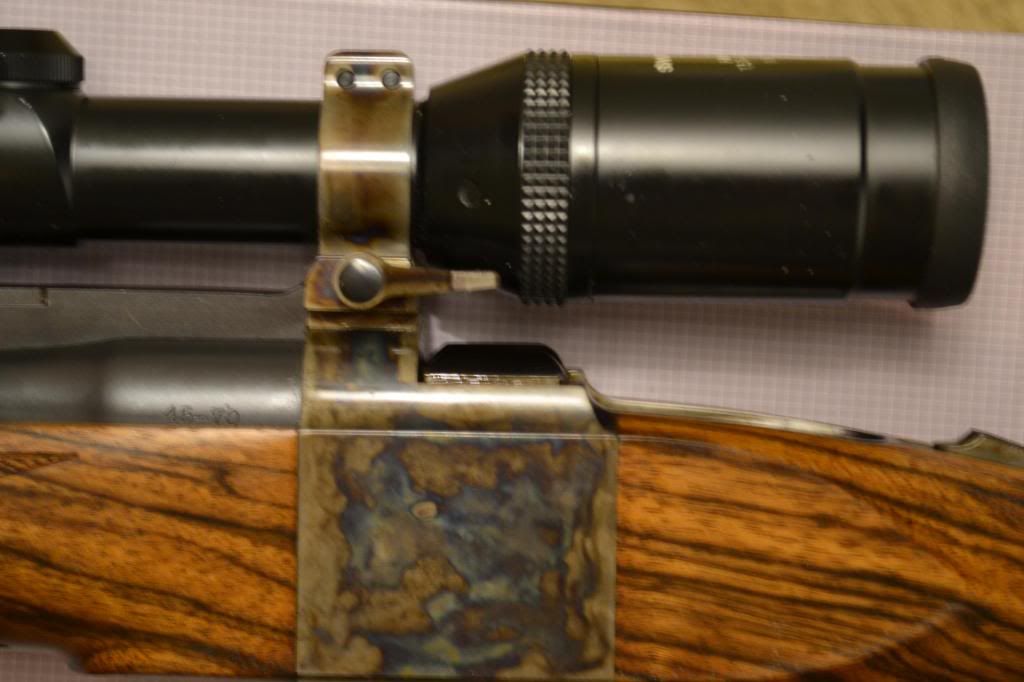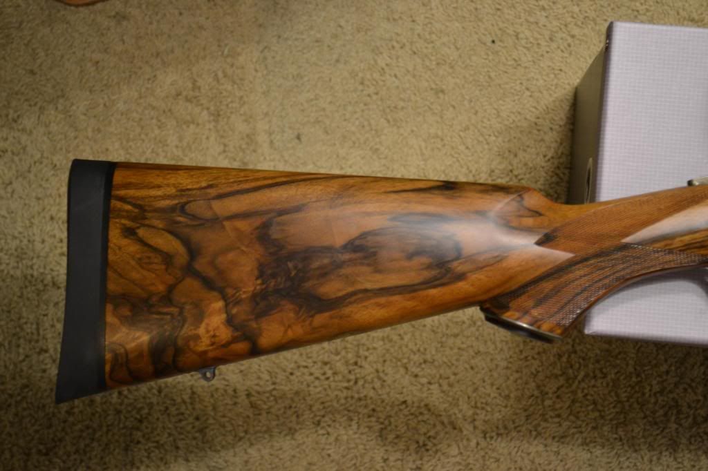 The rifle arrived today at my local shop and it's sitting here at home now. I'm very happy with the wood and build quality. Barrel is 28" to breach block. Hooded front sight, express rib, quick detach rings and a 1.5-4.5 scope. Weight is 9 pounds with the scope.