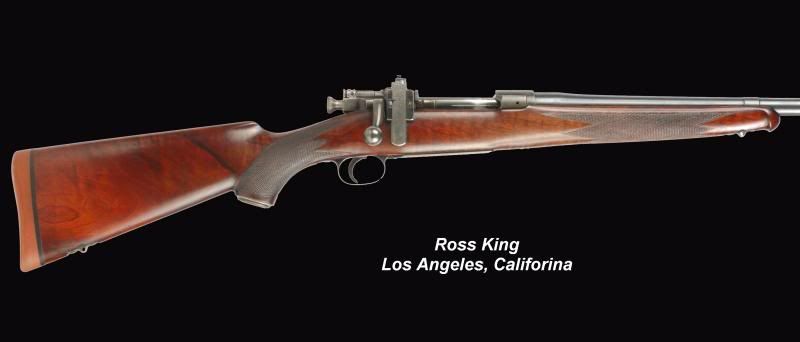 Roscoe Charles (Ross) King was born in Ohio on June 22nd 1872, to Daniel R. Ross and Sarah (Perry) Ross. It took me a while to learn his real name since he used both “Ross King” & “Charles R. King”. As far I know he never used the name Roscoe. By 1880 he and the family were located in Fort Dodge, Iowa. In 1888 at the age of sixteen he apprenticed to a gunsmith by the name of W.L. Pray, at Fort Dodge and worked for him for about four years. In 1893 Ross King spent a hitch in the 1st US Cavalry and went to Fort Grant, Arizona. After that he did gunsmithing until the outbreak of the Spanish American War when enlisted in the 52nd Iowa. After the war he traveled around a lot, ran a shop in Oregon and later at San Bernardino, California. His last shop which he sold out to go to work for Wundhammer was located at Alhambra, CA. He worked for Ludwig Wundhammer in Los Angeles, for five years (circa 1910-1915) then started his own shop and when Wundhammer died in 1919 Ross King bought the Wundhammer shop and continued to make custom rifles in the Wundhammer style.