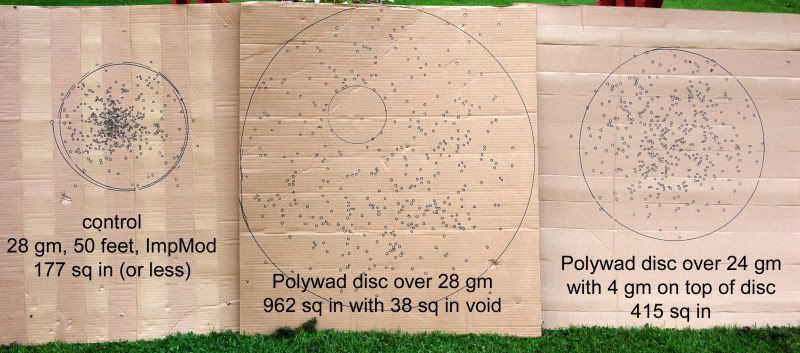 It is amazing how much the pattern size changed with a small amount of shot over the polywad! In my ignorance I would have expected the opposite result!