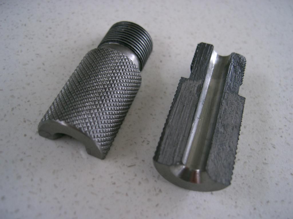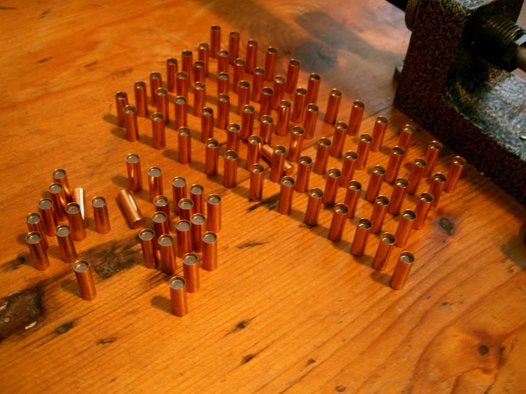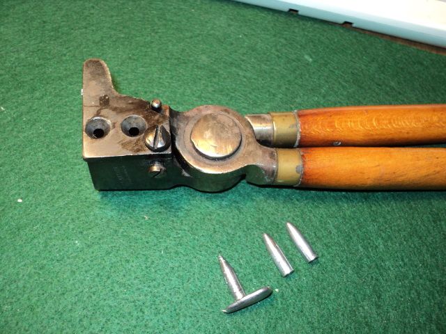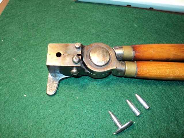 The first photo shows swaging the cores, the second the cores in the jackets and the last one showing what happens to the seating die if you use too much pressure.