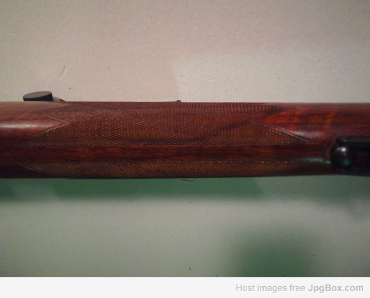 Among the things I like about this rifle is the wood. On a lot of these old, fancy sporters, the wood seems to be very understated. No marble cake or intense fiddle or crotch figure. And I like this much better, though I've gone down the fancy wood road a time or two in the past. So, if one was trying to buy a similar stick of wood from an established dealer of quality gun lumber, what does one call this? And how much is such a blank likely to run. I know this is highly subjective but I don't consider this TripleX fancy grade that would run $1000 or even $500. Then again, maybe I'm missing something. And, oh yes, I'm stumbling around looking for a stick of wood. Suddenly the blanks in my basement don't look this nice anymore. Brent