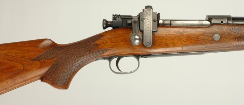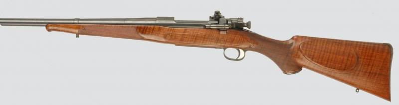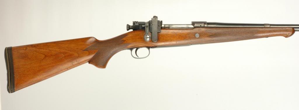 Thanks Michael, I have seen a very similar checkering pattern on a shelhamer stocked 03 that was in a Neidner add, Jan. 1929 American Rifleman I think, may-be 1926. The size of the stock is very scaled down, Fits a 10 year old child about right. Makes it tough to compare to anything else. Forend and grip are made of horn. Same dark finish as the picture you posted. Dan.
