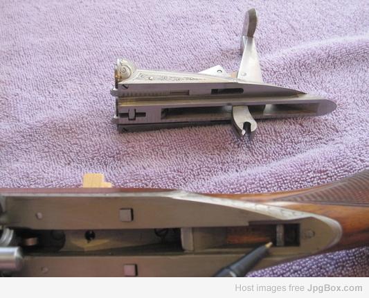Unlike many American or English doubles, A V grade Darne is not just the standard grade action with more features and embellishment. It is a completely different action with no parts interchange with the more familiar R action. A quick trip around the world wide web that Al Gore invented will get you instructions on how to take down an R action, but, little is out there on the V action.