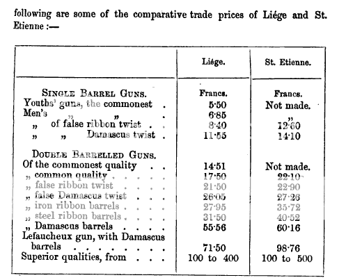 Comparison of gunmaking centres of Liege & St. Etienne in 1866. I believe there is some truth in the report that continued for a time:   Kind Regards, Raimey rse