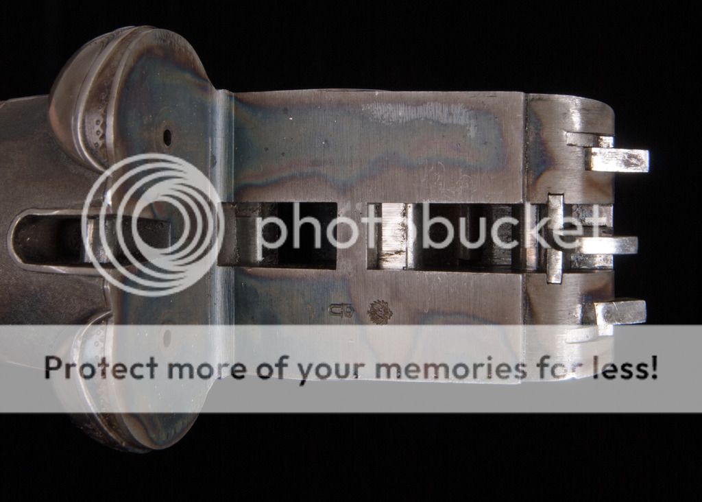 #1105 (second serial number set) circa about 1901 is a Charles Daly 12ga Diamond quality hammergun. It is marked HAL/pistols with 28" Whitten steel barrels. They are marked "RS". The action is secured with a Jones underlever. It has a straight (English) stock with no cast although the trigger are set up for a lefty. Everything about this gun is correct. The only other underlever Dalys I have seen are the famous 8 bore and 4 bore duo that have sold several tines for big bucks. Those gun were built a few years apart and this gun was built during that gap. It weighs 7-11