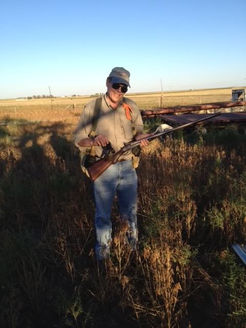 tw I know you have hunted with Wood a couple of times. Be sure and check the game in his bag before he cleans it and sends it home with you. This is the strangest looking dove I ever saw - maybe it is one of those Eurasian dove everyone is talking about: Molly retrieved it before Joe posed with his trophy: No whining to Dave Joe. The statute of limitations has run out on this one.