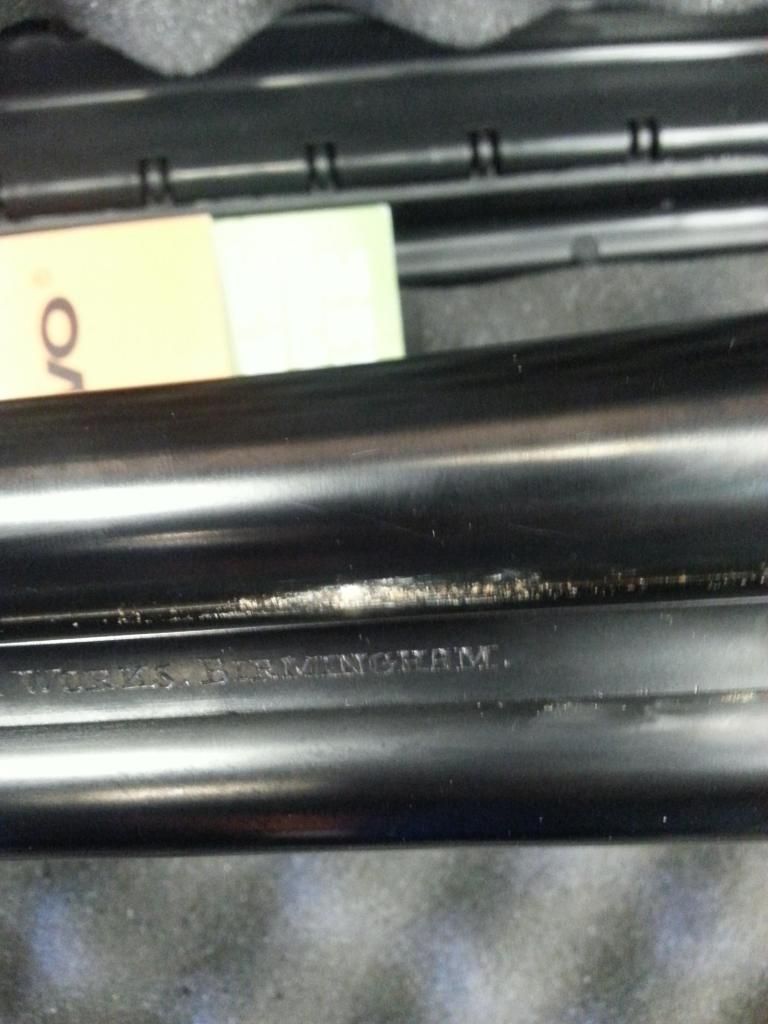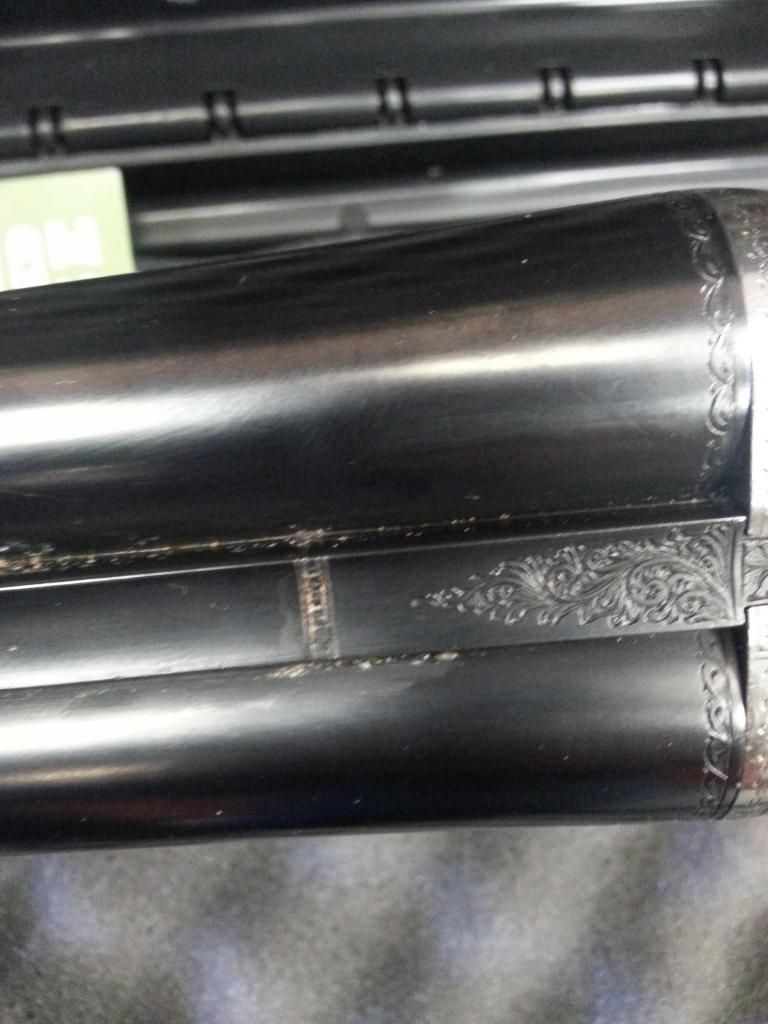 Lots of great advise and suggestions. So, went out and scraped some out into one of the Mrs good spoons. The material melted quite quickly, turning darker as it did and seemed a little sticky. Once it cooled it was pretty crystallized and hard. I explored several other areas along the rib and gently scraped with a scalpel tip. It is definitely silver underneath. I rang the barrels again and compared them to an older 101 I have. The sxs barrels are quite noticeably higher in pitch. The vibration was very similar on both, really could not tell a difference in the feel. This is a mid 50's gun so practically new compared to my usual stuff. It either hasn't been used much or someone spent a bunch of money on refinishing it.