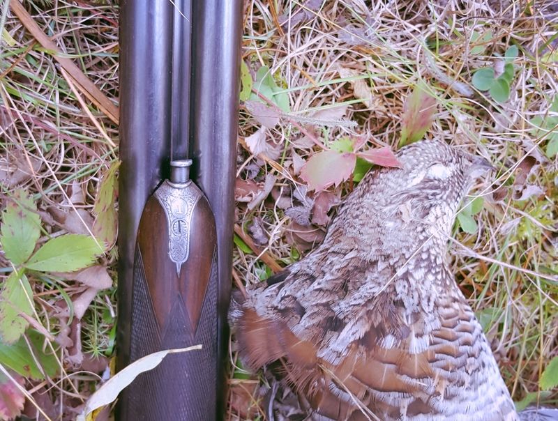 Off topic, but.....shot with a W. Richards. The worlds smallest October ruffed grouse.