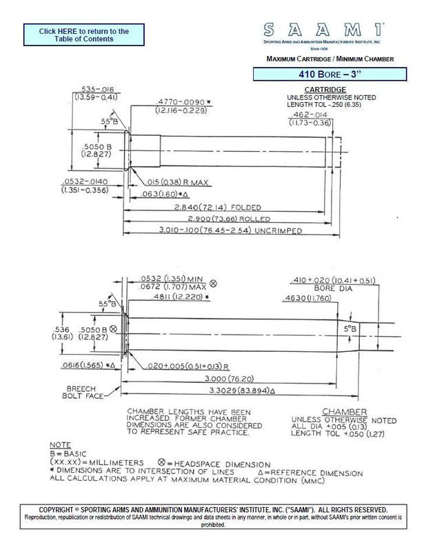 Chuck; Chamber dia = .463"; Bore dia = .410; Difference = .053"; .053/2 =.0265"; Co-Tan 5° = 11.43 11.43 x .0265 = .3029; Exactly what is shown on the drawing. I definitely would "NOT" call this a Long Cone. The cone length is shorter for the same angle in the .410 than in the larger gauges because there is less difference in chamber & bore diameters.