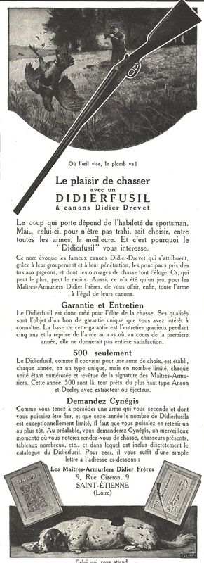 Le « Fusil Didier » est, en fait celui de Didier Drevet, un spécialiste du canon damas couronné en 1855 à l'exposition universelle de Paris, et qui déposa en 1899 un brevet pour son fameux « canon Plume », un hamerless système Anson classique mais dont la particularité était de disposer d'un canon sans bande dont les tubes étaient réunis au moyen d'une cale unique, puis brasés. On gagnait ainsi 200 grammes sur les canons traditionnels avec des tubes amincis mais plus épais aux endroits sensibles comme les chokes et la liaison avec les grenadières. Ce qui en faisait un fusil à la fois léger (2,6 kgs en 12) et maniable (souvent avec des tubes de 68), et totalement modulable « à la carte » ou « sur mesure » comme la plupart de la production de haute volée de l'entre deux guerres : platines, crosses anglaises, jaspage, etc. Le Fusil Didier voulant privilégier la qualité à la quantité se limitait à une production de 500 unités par an, garantis cinq ans.